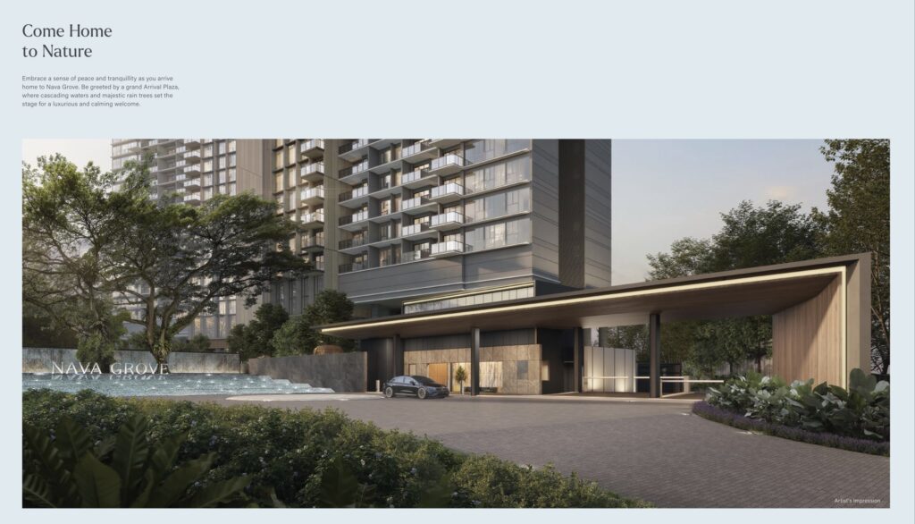 At Nava Grove, a wondrous world of water beckons you, with breathtaking pools and gently meandering streams reflecting the soft morning light, all wrapped in ribbons of green. Embrace a sense of peace and tranquillity as you arrive home to Nava Grove. Be greeted by a grand, spacious drop-off, where cascading waters and majestic rain trees set the stage for a luxurious, resort-like welcome.