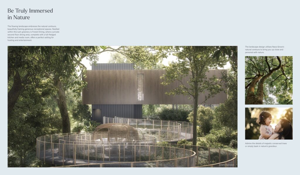 Nestled in the prestigious Mount Sinai and Pandan Valley estates, surrounded by good class bungalows and near Holland Village, Nava Grove is perched on elevated grounds among Singapore’s verdant green belt. Lush, picturesque, and almost untouched, the richness of nature flows all around – from the Clementi and Dover Forests to the Rail Corridor and Ulu Pandan Park Connector, to the Greater Southern Waterfront and beyond.